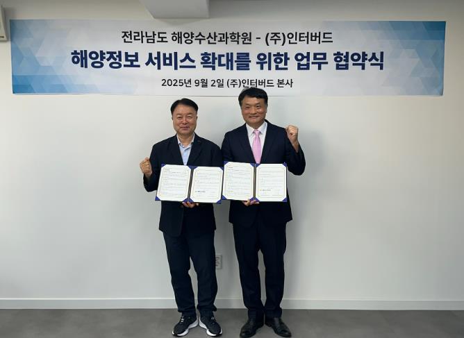 [뉴스시대=김정희 기자] 전라남도해양수산과학원은 민간 해양정보 앱 분야 선두주자 ‘바다타임’을 운영하는 ㈜인터버드와 지난 2일 어업인 맞춤형 해양정보 서비스 제공을 위한 업무협약(MOU)을 했다.