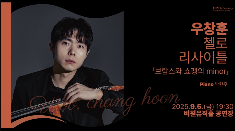 [뉴스시대=김정희 기자] BMH 레지던시 6인의 리사이틀 시리즈 세 번째, 첼리스트 우창훈이 선보이는 브람스와 쇼팽이 작곡한 단조 구성의 첼로 소나타 콘서트 개최