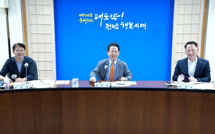 ▲ 김영록 전라남도지사가 28일 도청 정약용실에서 ‘2025 명량대첩축제 추진상황 보고회’를 주재하고 있다. |