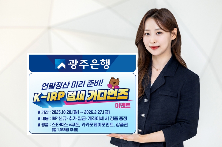 [뉴스시대=김정희 기자] 광주은행은 20일, 연말정산 시즌을 맞아 절세 혜택을 받을 수 있는 연금계좌 활용법에 대한 관심이 높아짐에 따라, 개인형 IRP(개인형퇴직연금) 고객을 대상으로 ‘K-IRP 절세 가디언즈’이벤트를 실시한다고 밝혔다.