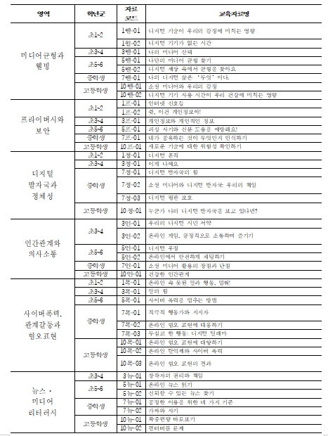 이번 자료는 미국 Common Sense Education(CSE) 모델을 한국 실정에 맞게 재구성한 것으로, △미디어 균형과 웰빙 △프라이버시와 보안 △디지털 발자국과 정체성 △사이버폭력·혐오표현 대응 △뉴스·미디어 리터러시 등 6대 영역을 포함한다.