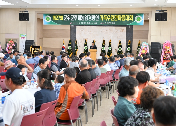 [뉴스시대=김정희 기자] 한국후계농업경영인 군위군연합회는 지난 29일 군위군민회관에서 ‘제27회 군위군후계농업경영인 가족수련 한마음대회’를 성황리에 개최했다.