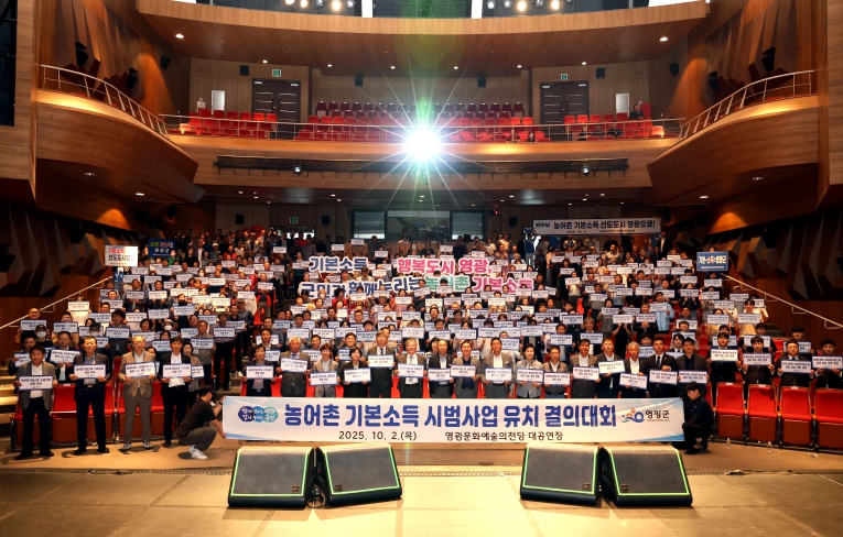 [뉴스시대=김정희 기자] 영광군은 지난 10월 2일 오후 2시, 영광문화예술의전당 대공연장에서 '농어촌기본소득 시범사업 유치 결의대회'를 성황리에 개최했다.