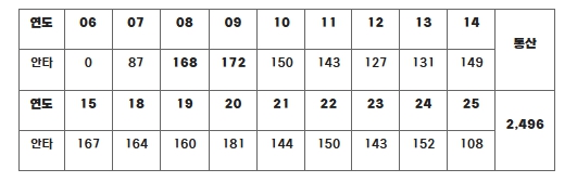▲ 김현수 연도별 안타 |