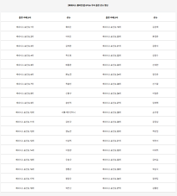 ▲ [제네시스 챔피언십] KPGA 투어 출전 선수 명단 |